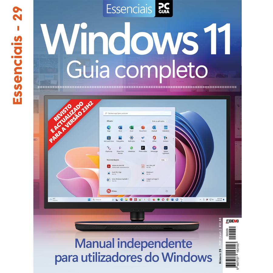 O Novo Guia Completo do Windows 11, o 29º da coleção Essenciais PCGuia. Trata-se de um manual independente para utilizadores do Windows, completo e atualizado, inclui a última versão 23H2. São muitas dicas sobre as funcionalidades e aplicações mais importantes do sistema operativo mais recente da Microsoft.